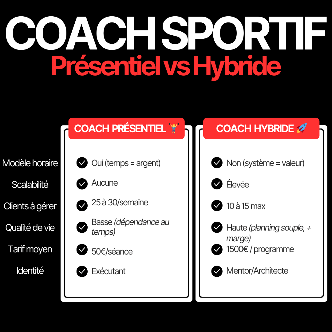 Depuis, il a accompagné plus de 200 coachs sportifs à créer leur offre premium, lancer leur business hybride et dépasser les limites du modèle “à l’heure”.
