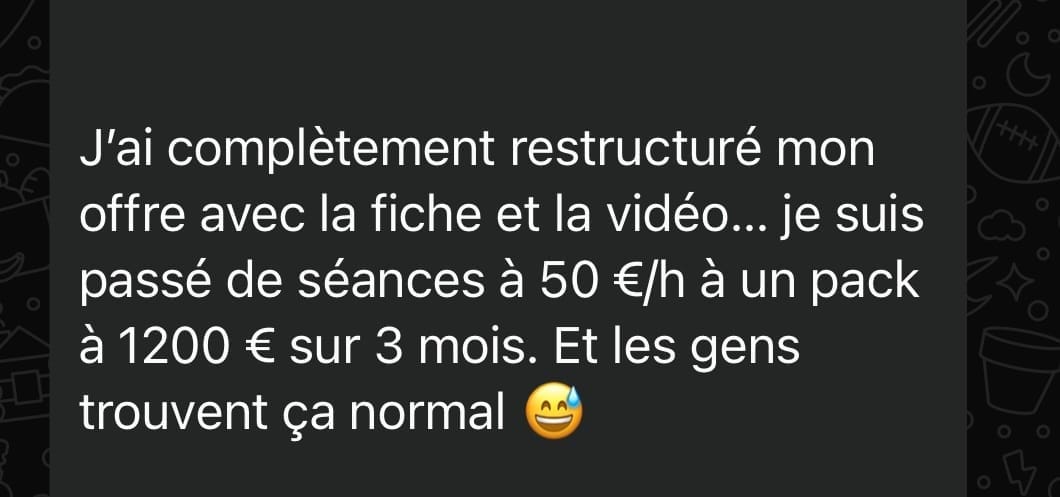 ce qui te permet enfin de vendre une transformation, et non des séances, tout en regagnant ton temps, ton énergie et ta clarté business.